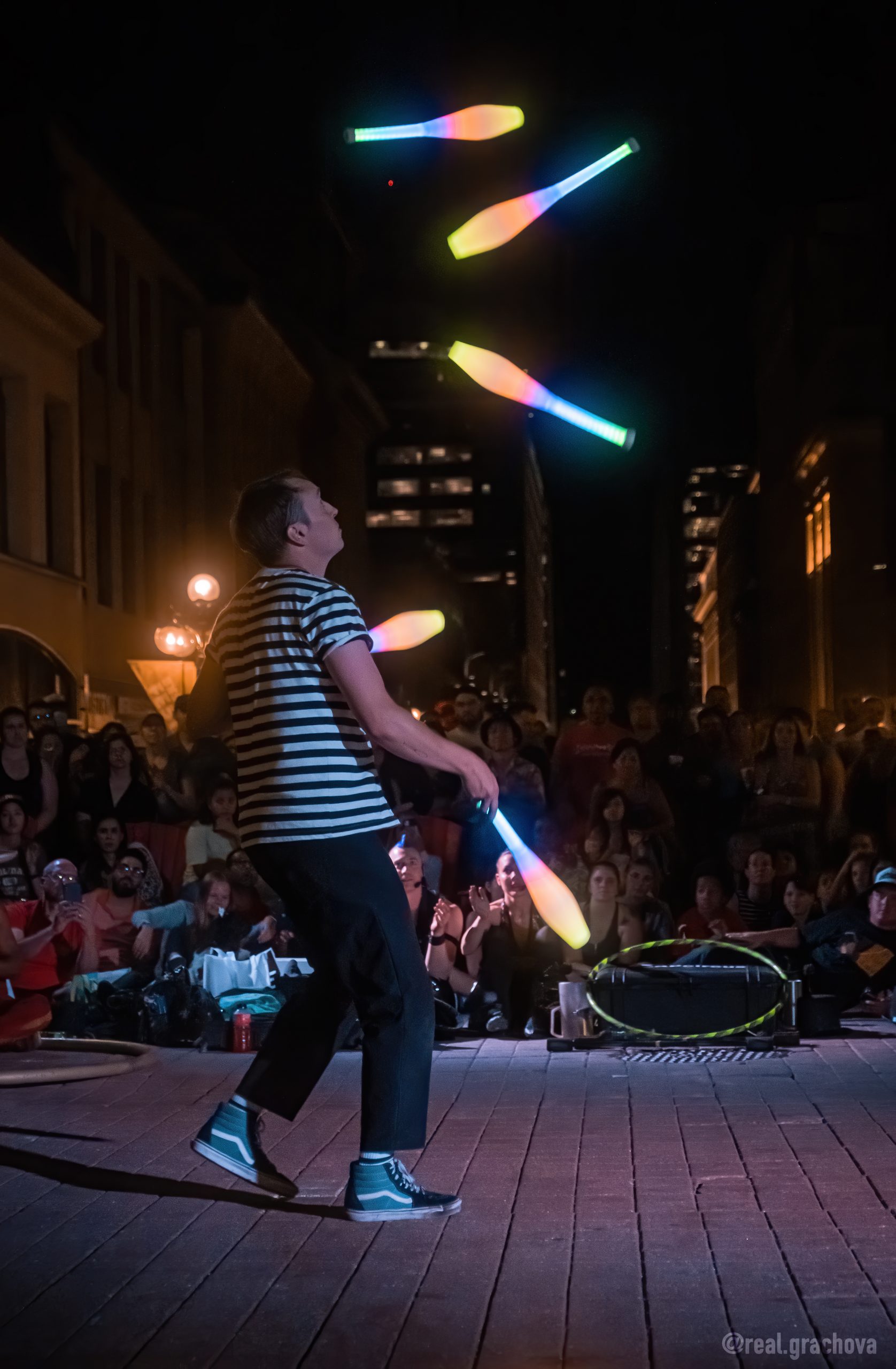 Yoshi is a highly skilled juggler from Ottawa, Canada, known for his captivating performances that blend precision, creativity, and comedy. With experience performing across Canada and internationally in Europe, South America, Australia, and the Middle East, Yoshi brings a dynamic and engaging presence to every stage. He has showcased his talents with Cirque du Soleil, performing alongside some of the world’s most accomplished artists, and continues to entertain audiences as a sought-after busker at festivals and street performances worldwide.